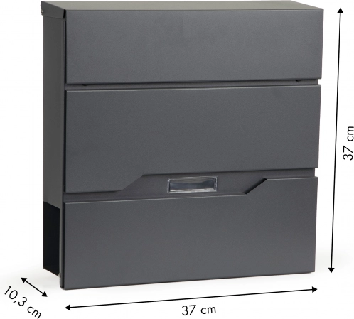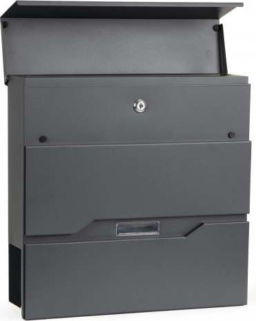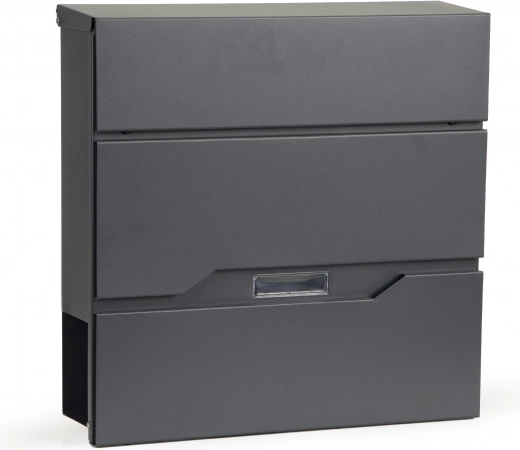 Nabiralnik ima sodoben in eleganten dizajn z integriranim držalom za časopise, ki ločuje pošto od oglasov.