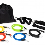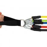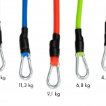 Pet barvno označenih elastik z različno stopnjo upora lahko uporabljate posamezno ali jih s karabini združite za višjo intenzivnost – idealno za začetnike in napredne.
