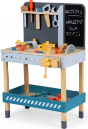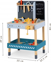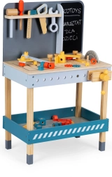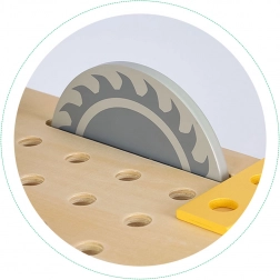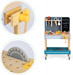 Ta lesena delavnica je odličen način, da otroci uveljavijo svojo domišljijo in izboljšajo svoje motorične sposobnosti. Vsebuje različna orodja, kot so žaga, kladivo, ključ, izvijač in številna druga, ki otroku omogočajo začutiti veselje do pravega dela z lesom.