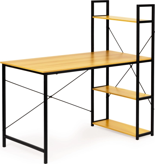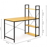Miza nudi prostorno delovno površino ter stransko stojalo s štirimi policami za shranjevanje knjig, dokumentov ali dekoracij. Celotna konstrukcija je zasnovana z mislijo na vzdržljivost in dolgo življenjsko dobo, zahvaljujoč materialom, kot sta MDF plošča in s prašnim lakom premazano jeklo.