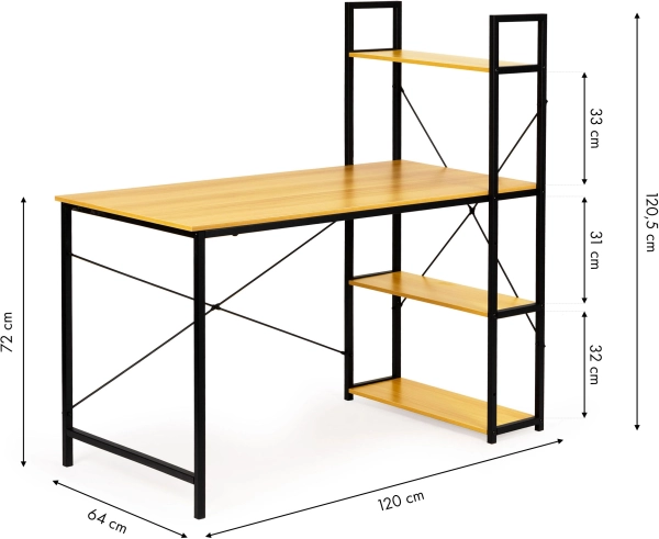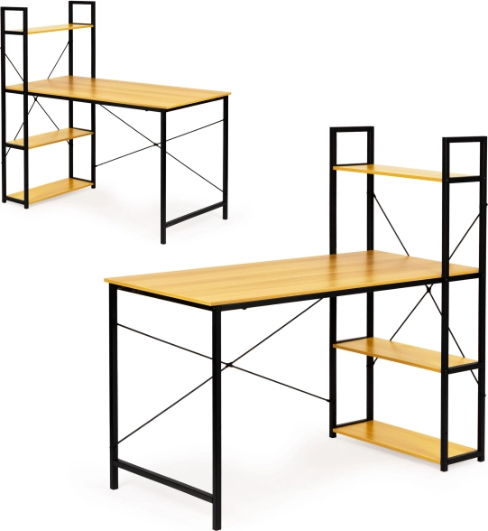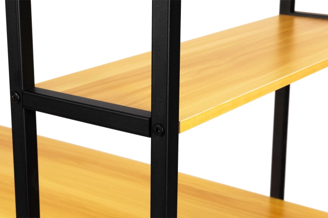 Če iščete kombinacijo modernega dizajna in funkcionalnosti, je ta računalniška miza z loft policami idealna izbira. Delovna površina iz naravnega lesa, podprta s črnim kovinskim ogrodjem, bo vaši domači pisarni ali delovnemu prostoru dodala stil in praktičnost.
