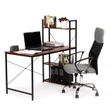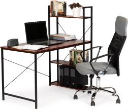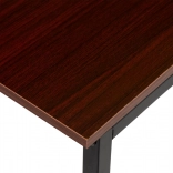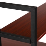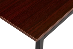 Ta lesena računalniška miza je izdelana iz kakovostnih materialov, ki združujejo les in kovino za maksimalno trdnost in vzdržljivost. Površina mize je prekrita s temno rjavim laminatom, kar zagotavlja eleganten videz in enostavno vzdrževanje.