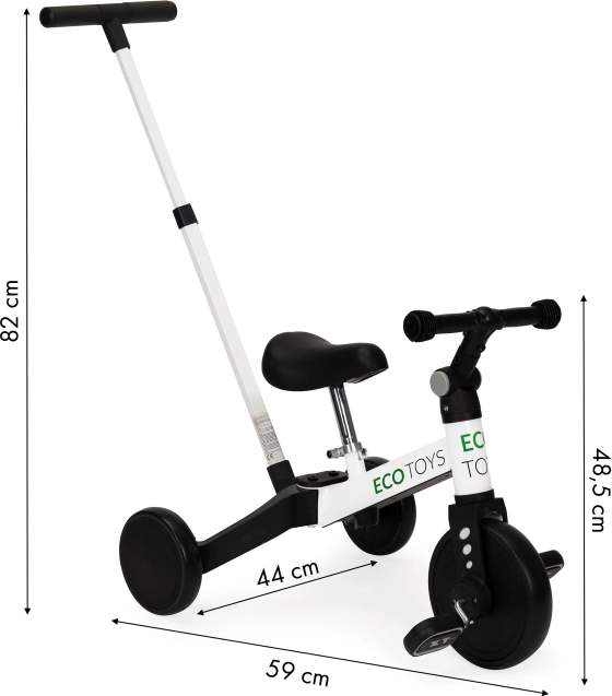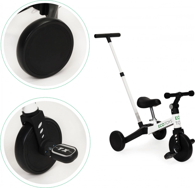 Otroška trikolesna kolesa ECO TOYS predstavlja inovativno rešitev za male raziskovalce, ki se želijo naučiti voziti kolo. Ta model združuje ravnovesno kolo s tradicionalnim kolesom, kar omogoča enostaven prehod in rast z otrokom.