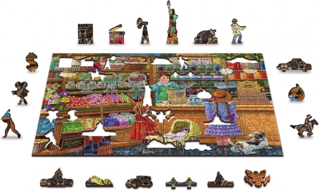 Privoščite si izziv z leseno dvostransko sestavljanko WOODEN CITY Sladka pustolovščina 2v1. Zahvaljujoč trdnemu HDF materialu debeline 3–4 mm in natančnemu laserskemu izrezu ima vsak del popolno prileganje in čudovito zglajene robove. V kompletu so tudi whimsy kosi – posebej oblikovani deli v oblikah živali, stavb in predmetov, ki dodajo sestavljanju šarm in lahko stojijo kot drobne figurice.