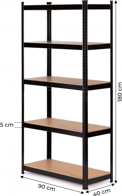 Predstavljamo vam kovinsko stojalo blagovne znamke ModernHome, ki ponuja pet trpežnih polic z maksimalno nosilnostjo vsake do 150 kg. Stojalo je izdelano iz pocinkanega jekla, kar zagotavlja dolgo življenjsko dobo in stabilnost konstrukcije.