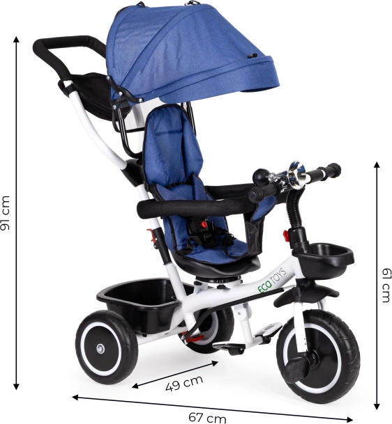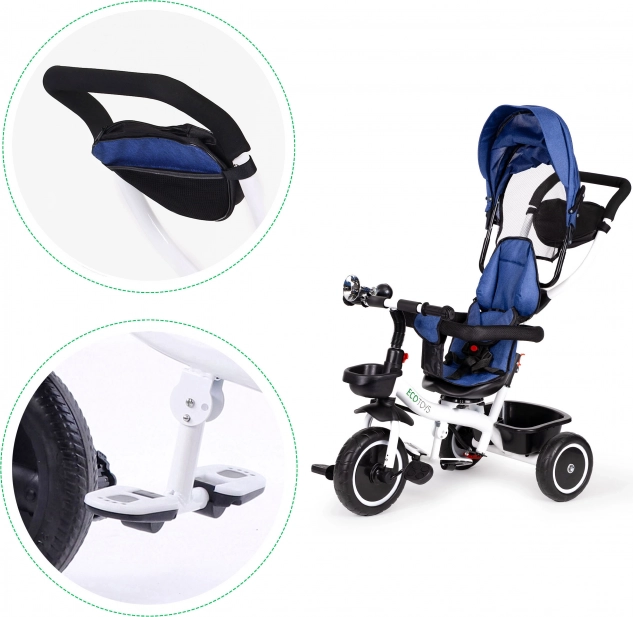 Tricikel ECOTOYS je idealna izbira za starše, ki iščejo varno in udobno prevozno sredstvo za svoje otroke. Vrtljiv sedež za 360° omogoča nastavitev smeri sedenja glede na potrebe. Mehko naslonjalo in pettočkovni varnostni pasovi zagotavljajo največjo varnost in udobje za vašega otroka.