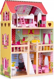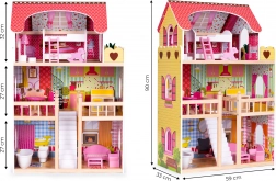 Celotna hišica je izdelana iz kakovostnega lesa, kar pomeni, da bo igrača služila mnogo let. V pritličju sta kopalnica in dnevna soba z zofo za punčko. Prvi dve ravni povezujejo bele lesene stopnice. Drugo nadstropje je opremljeno s kuhinjo in jedilnico ter lesenim ograjami, ki preprečujejo padec punčke. V najvišjem nadstropju najdete spalnico za punčko z izhodom na teraso.