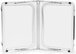 Po zlaganju ima miza obliko kovčka z integriranim ročajem. Preprosto se prenaša in shranjuje v avtu, avtodomu ali doma.