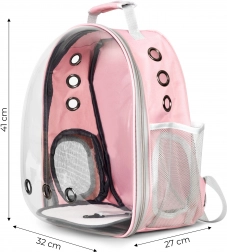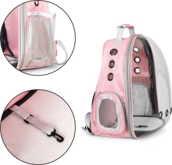 Ta nahrbtnik za prevoz vašemu ljubljenčku zagotavlja maksimalno udobje in varnost na poti. Sprednja prozorna plošča omogoča opazovanje okolice, medtem ko trpežni materiali in notranja varnostna zaponka ohranjajo vse pod nadzorom. Več prezračevalnih odprtin in mrežasti paneli zagotavljajo stalen dotok svežega zraka.