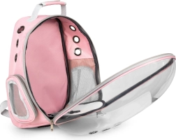 Za skrbnike je nahrbtnik udoben zahvaljujoč ergonomskim naramnicam, čvrstemu ročaju in premišljeni opremi: stranski žepi za priboljške in drobnarije, stranski zadržni vstop za hiter dostop do živali ter enostavno pomljivo notranje dno za čistočo na vsakem izletu.