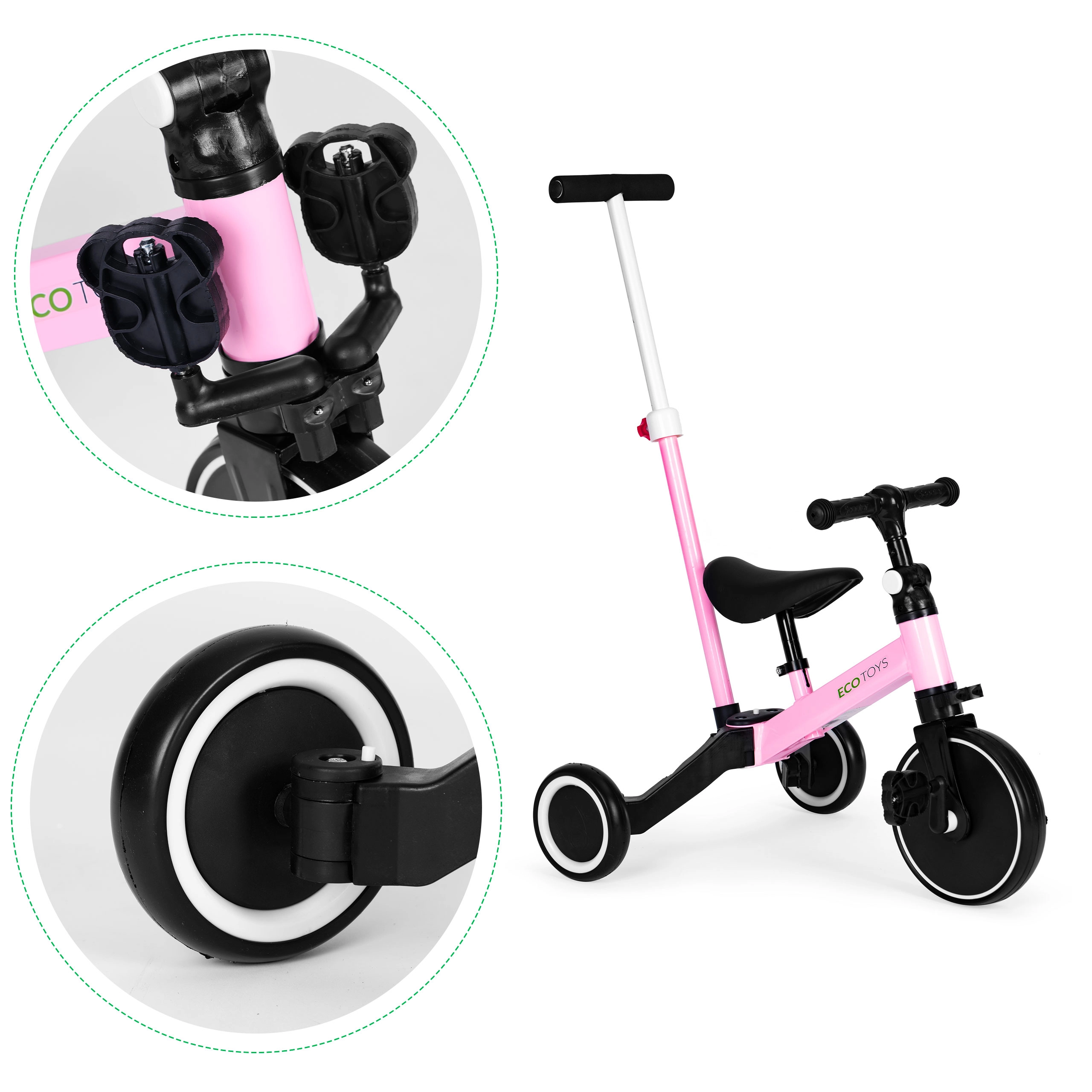 Možnost pretvorbe poganjalca v klasično kolo s pedali pomeni, da se otrok lahko začne učiti vožnje na tej vrsti kolesa varno. Mehek sedež in nedrseči ročaji zagotavljajo udobno zabavo za mnogo ur. Kolesa so izdelana iz EVA, odpornega na predrtje, zato jih lahko uporabljate doma in na sprehodih.