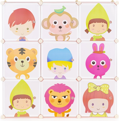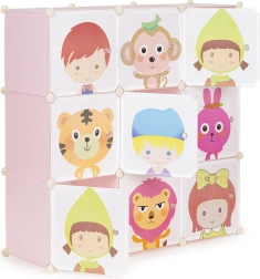 Predstavljamo knjižno omarico za otroke, idealno za shranjevanje njihovih najljubših igrač, knjižic in malenkosti. Ta modularna omarica je sestavljena iz 9 polic (modulov)ki jih je mogoče prosto razporediti in tako pohištvo prilagoditi posameznim potrebam in željam.