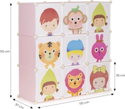 Vsaka od 9 polic prenese do 3 kg obremenitve, kar pomeni, da z lahkoto shranite knjige, plišaste prijatelje ali kocke. Enostaven dostop do shranjenih predmetov omogoča, da se otroci lahko sami poskrbijo za red.