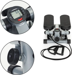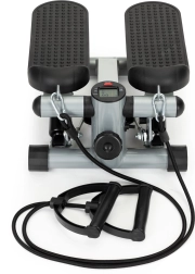 Ustvarite si učinkovito kardio in vadbo moči kar doma. Ta mini stepper združuje tekoče gibanje s hidravličnim uporom, udobne protizdrsne stopalne plošče in uporovne elastike z mehkimi ročaji za aktivacijo zgornjega in spodnjega dela telesa. Vgrajeni zaslon pregledno spremlja čas, korake, korake na minuto, kalorije ter način SCAN.
