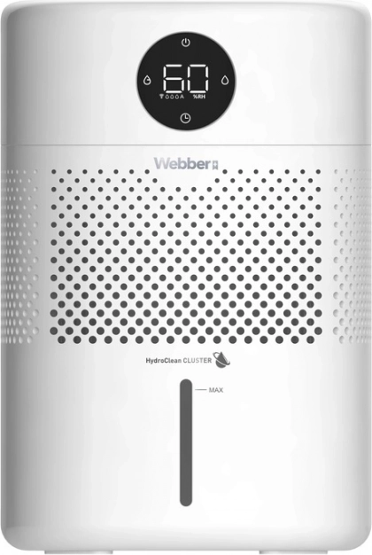 Prikazuje trenutno vlažnost zraka v prostoru in prikazuje trenutni način delovanja. Omogoča enostavno nastavitev načinov delovanja: samodejni način, ročni način, nočni način.