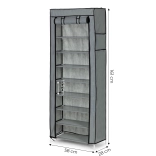 Praktična tekstilna omara z več nivoji shranjevanja vam pomaga ohranjati red v oblačilih, dodatkih in obutvi. Zaradi kompaktnih mer 58 × 28 × 161 cm se prilega tudi v manjše prostore. Ponuja do 9 polic, čvrsto kovinsko konstrukcijo s plastičnimi spojkami ter rolo zaveso z dvema zadrgama proti prahu. Ne manjka bočni žep za drobnarije in enostavna montaža brez orodja.