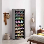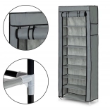 Stabilno ogrodje iz kovinskih cevi s plastičnimi spojkami zagotavlja trdnost celotne konstrukcije. Police iz trpežnega tekstila so napete med cevmi, kar poveča togost in omogoča udobno ter pregledno shranjevanje. Zaradi razmika med policami približno 15 cm boste zlahka uredili oblačila in obutev.