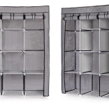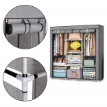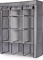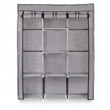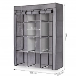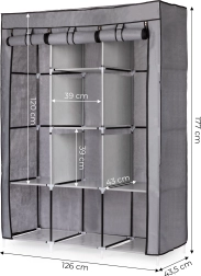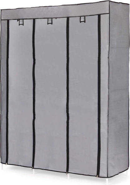 Ta velika tekstilna omara je odlična izbira za spalnico, garderobo in hodnik. Združuje obešalni prostor za srajce, obleke in plašče z odlagalnimi policami za puloverje, škatle ali čevlje. Preprost, univerzalen dizajn se brez težav vključi v vsak interier in nudi veliko shranjevalnega prostora tudi v manjših prostorih.