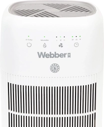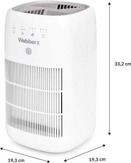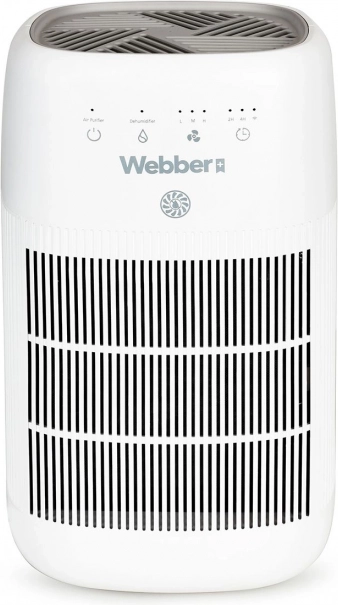 Webberjev razvlaževalnik in čistilec zraka združuje sodobno tehnologijo PureAir z učinkovitim razvlaževanjem, zato v prostoru znižuje vlago, omejuje nastanek plesni in rosenje oken ter hkrati filtrira prah, alergene in vonjave. Tristopenjska filtracija (predfilter, ogljikov filter in HEPA 13) zajame do 99,97 % delcev od 0,3 µm – idealna rešitev za alergike in družine z otroki.