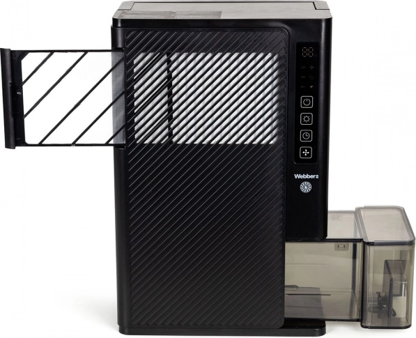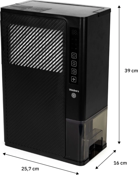 Kompakten in zmogljiv razvlaževalnik WEBBER izboljša klimo doma in v pisarni. Zahvaljujoč tehnologiji ROTOR DISC učinkovito deluje tudi v mrazu 0–15 °C, odstrani do 3 l vode na dan in ponuja tihi nočni način ≤ 41 dB. Upravljanje je preprosto prek sledilne (touch) plošče in pametnega nadzora vlage/kakovosti zraka True Lumos. Na voljo so časovnik, 2 hitrosti ventilatorja, samodejni izklop ob polni posodi, zaščita proti prevračanju ter pralni filter.