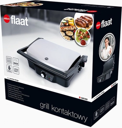 ELDOM GK150 Flaat je eleganten in kompakten žar, ki združuje kontaktni žar za panine, steake in zelenjavo z možnostjo ploščatega žara po odprtju na 180°. Nelepljive plošče olajšajo pripravo brez prijemanja in hitro čiščenje, medtem ko termostat z nastavitvijo temperature zagotavlja sočne in popolno zapečene rezultate.