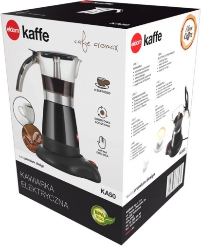 Električni moka kavnik ELDOM KA50 združuje klasično pripravo močne aromatične kave z udobjem sodobnega delovanja. Zahvaljujoč prosojnemu pokrovu in posodi imate nad procesom kuhanja popoln nadzor in zlahka ujamete idealen trenutek za prelivanje. Kompaktna zasnova in nizka masa ga naredita praktičnega pomočnika doma, v pisarni in na dopustu.