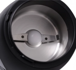 Zahvaljujoč jeklenim rezilom mlinček omogoča enakomerno in hitro mletje do 50 g zrn na eno porcijo. Varnostni sistem ne dopušča zagona brez nameščenega pokrova, zato je uporaba maksimalno varna. Praktičen prostor za kabel in nedrseče nogice olajšata vsakodnevno uporabo.