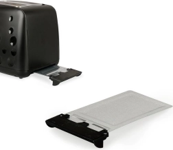 Praktičen nastavek za ogrevanje žemelj ter funkciji odmrzni in pogrej razširjajo možnosti uporabe vsak dan. Vzdrževanje poenostavi izvlečni pladenj za drobtine, medtem ko hladno ohišje, kromirani detajli in prostor za shranjevanje kabla v osnovi zagotavljajo varnost in red na delovni površini.