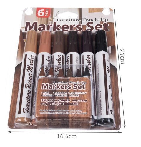 Set vsebuje 6 različnih odtenkov: hrast, češnja, mahagonij, javor, oreh in črna. Uporabite ga lahko za širok spekter lesenih površin.
