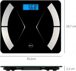 Tehtnica je izdelana iz 4 mm debelega kaljenega stekla, zato prenese obremenitev do 180 kg. Natančen merilni sistem zagotavlja merilno natančnost 50 g, protizdrsne podloge pa poskrbijo za stabilnost pri uporabi.