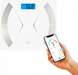 Raziščite svoje telesne parametre s tehtnico Eldom, ki uporablja tehnologijo BIA za analizo dvanajstih podatkov o vašem telesu, vključno s telesno težo, BMI, deležem maščobe, mišično in vodno maso ter drugimi. S tehtnico lahko merite tudi temperaturo okolice in shranjujete podatke za več uporabnikov zahvaljujoč vgrajenemu pomnilniku in povezavi z napravami iOS ali Android.