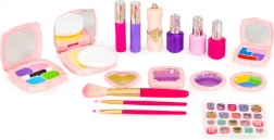 Set je namenjen otrokom od 3 let. Spodbuja domišljijo, fino motoriko in igro vlog – mala vizažistka bo uživala ure zabave z barvitimi dodatki.