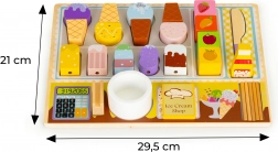 Ta leseni sladoledni set vabi otroke v svet igranja vlog – lahko postanejo prodajalec, kupec ali mali slaščičar. Natančno izdelani deli z realističnimi detajli dajejo igri občutek pristnosti ter razvijajo fino motoriko, sodelovanje in komunikacijo.