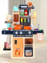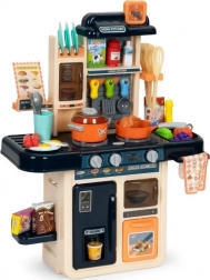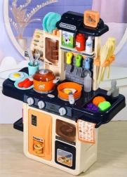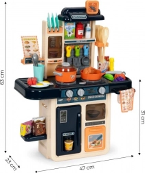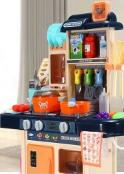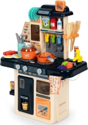 Ta moderna otroška kuhinjica ponuja vse, kar je potrebno za kuhanje »kot zares«. Po vklopu gorilnikov se zasliši zvok vrele vode in prižgejo se rdeče LED luči. Edinstven parni generator ustvari nežno paro – dovolj je, da v gorilnik nalijete vodo, pokrijete s posodo in čarovnija se lahko začne. Korito z dozirnikom vode omogoča, da iz pipe voda teče »zares«.