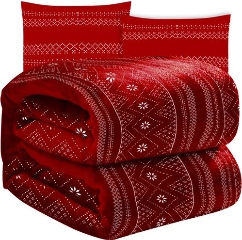 Ustvarite si prijeten kotiček doma z rdečo odejo in dvema prevlekama za blazino z zimskim motivom. Mikroflis iz poliestrskih vlaken je prijeten na otip, hitro greje, hkrati pa je zračen in nezahteven za vzdrževanje. Komplet je primeren za vsakodnevno uporabo, lenarjenje ob filmu ali branje knjige.