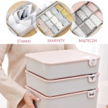 Iščete preprost način, kako ukrotiti nered v predalih? Rožnat organizator z 10 ločenimi predelki vam pomaga ločiti nogavice, hlačke, kravate ali šale, da boste vedno takoj našli, kar potrebujete. Zahvaljujoč praktičnemu pokrovu bo vse ostalo čisto in zaščiteno pred prahom.