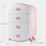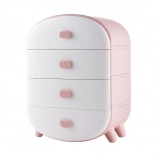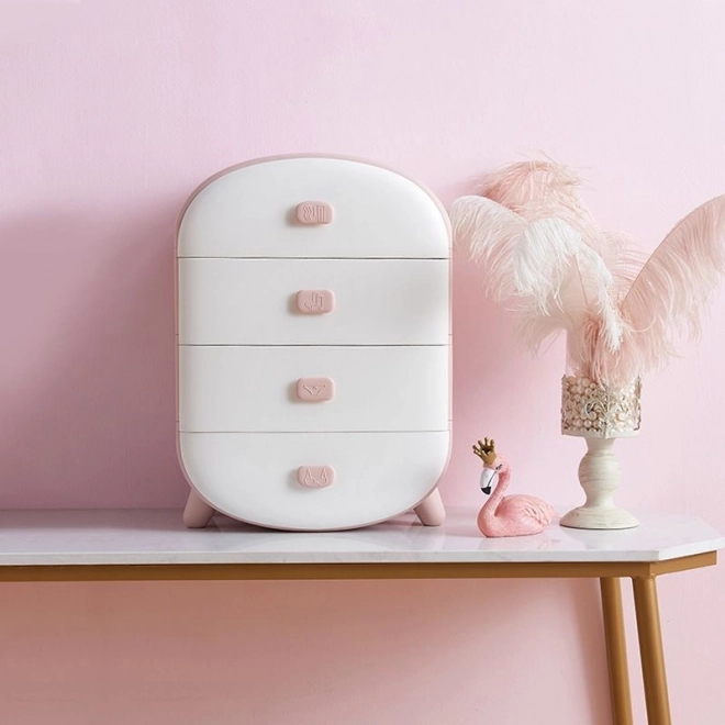 Zaobljeni robovi, sodoben dizajn in nežna rožnato-bela barva se odlično podajo v interier. Komoda je lahka, stabilna in enostavna za čiščenje – zadostuje, da jo obrišete z vlažno krpo. Lahko služi tudi kot izvirna nočna omarica ali pomočnik na toaletni mizici.