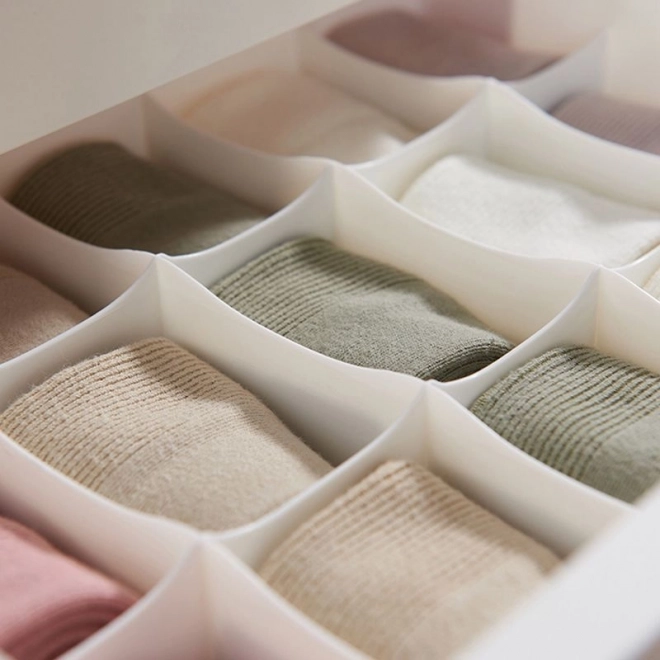 Predali s predelki za nogavice in spodnjice ter s posebnim vložkom za nedrčke ohranjajo vse popolnoma pregledno in brez mečkanja.