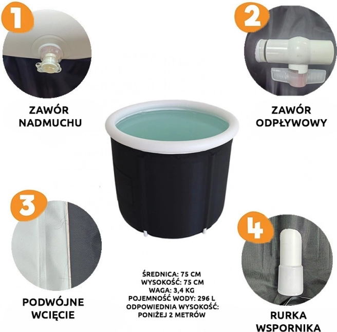 Uživajte v učinkoviti regeneraciji in hladni terapiji kadarkoli in kjerkoli s prenosno kadjo Balia Walrus. Zahvaljujoč trpežni konstrukciji, hitri pripravi in prostornini 296 l je idealna za domače hladne kopeli, športno regeneracijo in wellness rituale. Krepi imunski sistem, podpira krvni obtok in nudi hitro ohladitev po naporu – preprosto napihnite, napolnite in se potopite v ledeno kopel.