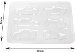 Kakovosten plastičen kalup 18 × 14 cm ustvari natančne oblike dirkalnih avtomobilčkov, ki se odlično barvajo in dobro držijo obliko.