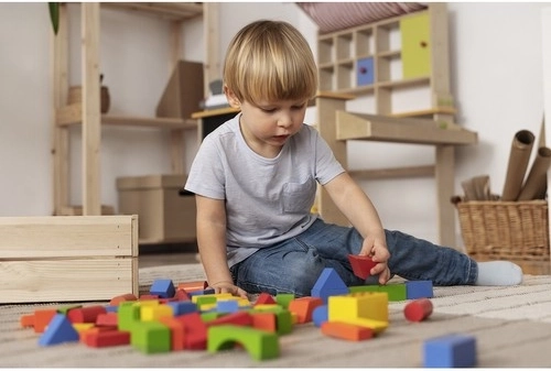 Pestri barvni odtenki kock razvijajo otroško domišljijo in logično razmišljanje, podpirajo razvoj kreativnosti in so primerne za otroke od 36 mesecev.