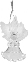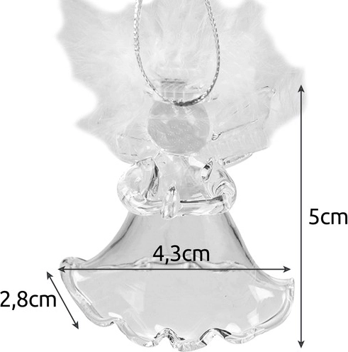 Komplet angelčkov iz prozornega stekla s peresnimi krili prinaša podrobno estetiko in nežnost. So idealen okras za božično drevo.