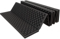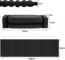 Ta zložljiva podloga z merami 180 × 60 × 1 cm je izdelana iz kakovostne pene EVA, ki se odlikuje po nizki teži, dolgi življenjski dobi in odličnih termoizolacijskih lastnostih. Profilirana površina z drobnimi izboklinami povečuje udobje, zmanjšuje drsenje in bolje izravnava neravnine terena.