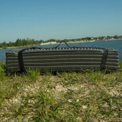 Zaradi vodoodpornega materiala je primerna za različne razmere – od jutranje rose do vlažne podlage. Sistem zlaganja v harmoniko in elastični trakovi z držalom omogočajo hitro pospravljanje ter enostavno prenašanje na nahrbtniku ali v roki.