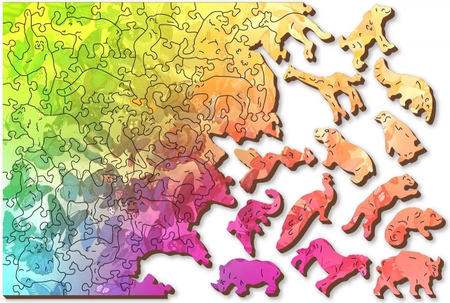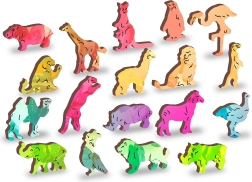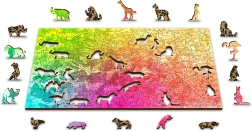 Sestavljanka vključuje kose v obliki živali in predmetov, ki jih je mogoče uporabiti kot majhne figurice.