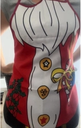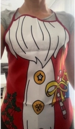 Božična predpasica je idealen pripomoček za vsakogar, ki rad kuha med prazniki. Njena zasnova spominja na tradicionalno obleko Božička, kar odstrani dolgočasje iz vaših kuhinjskih nalog.