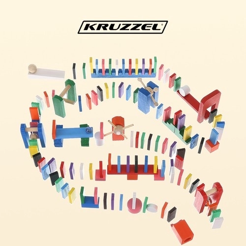 Ta bogato opremljen komplet združuje klasično leseno domino z elementi kroglišča za še več zabave. Zahvaljujoč široki paleti živih barv in raznolikim komponentam bodo otroci zgradili edinstvene proge, mostove in stopnice, po katerih steče očarljiva kinetična verižna reakcija. Igra razvija koordinacijo oko–roka, potrpežljivost in logično razmišljanje.