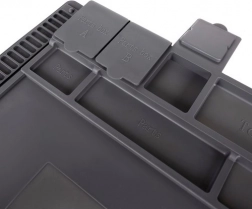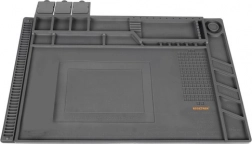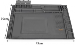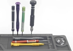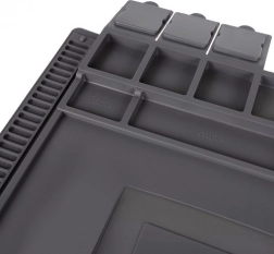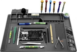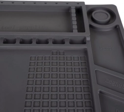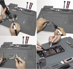 Ta večnamenska silikonska servisna podloga je idealna za popravila telefonov, prenosnikov in fino spajkanje. Zahvaljujoč 4 magnetnim žepom, razdeljenim predalčkom in namenskih mestom za izvijače boste imeli vse drobne dele in orodja vedno pod nadzorom. Nedrseč material vse drži na mestu tudi pri zahtevnejših opravilih.