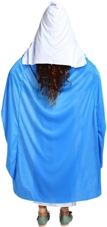 Ta tradicionalni kostum Device Marije sestavljajo dolga bela obleka z modrim plaščem, ki diskretno in prepričljivo izraža skromnost ter predanost lika. Zahvaljujoč lahkemu in mehkem poliesteru je nošenje za otroke udobno, ne tišči in omogoča svobodno gibanje med nastopi in igro.