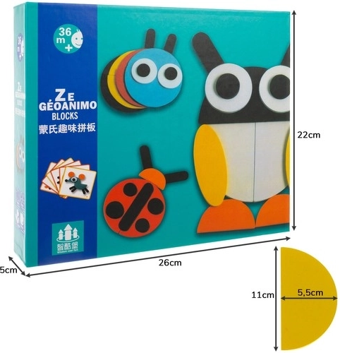 Odkrijte čar učenja skozi igro. Ta lesena sestavljanka združuje geometrijske oblike in pisane barve, da lahko otroci zlahka ustvarjajo živalske motive po priloženih predlogah. Kartice so označene z zvezdicami in vodijo otroke korak za korakom skozi tri stopnje težavnosti.